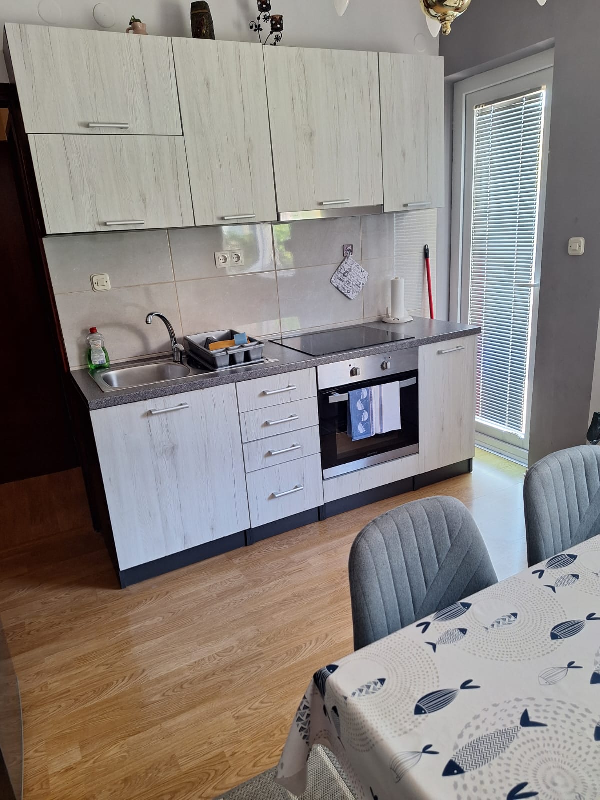 Apartman bol veľmi pekný, čistý. Pláž blízko, mohli sme si vybrať beton, piesok alebo kamienky.