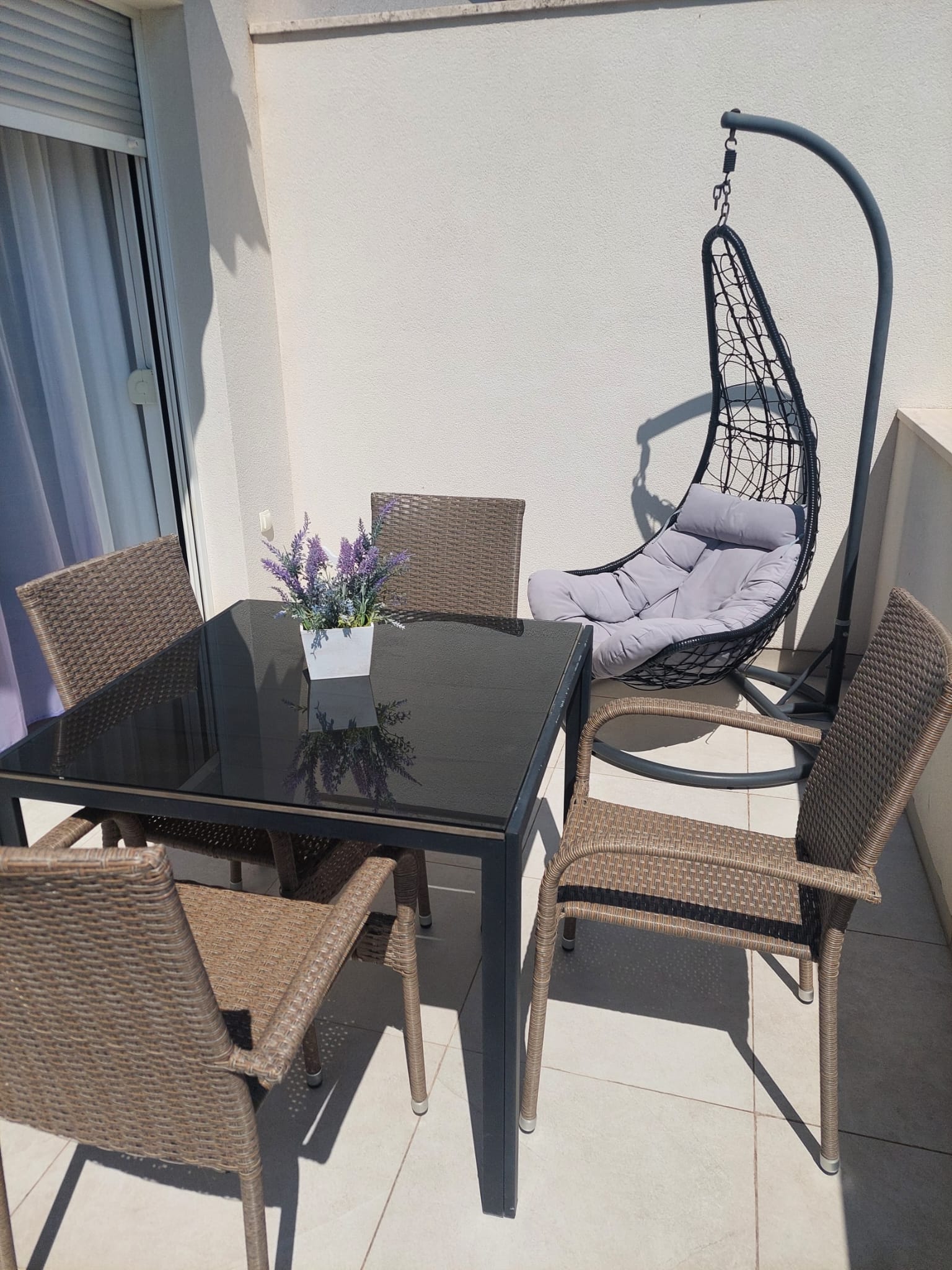 terasa alebo balkón s vonkajším nábytkom